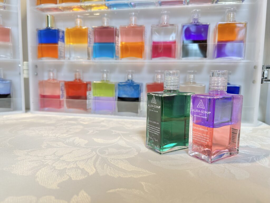 オーラソーマのボトルオイルは、お肌にすーっと馴染んでしっとり心地よい感覚が特徴です。